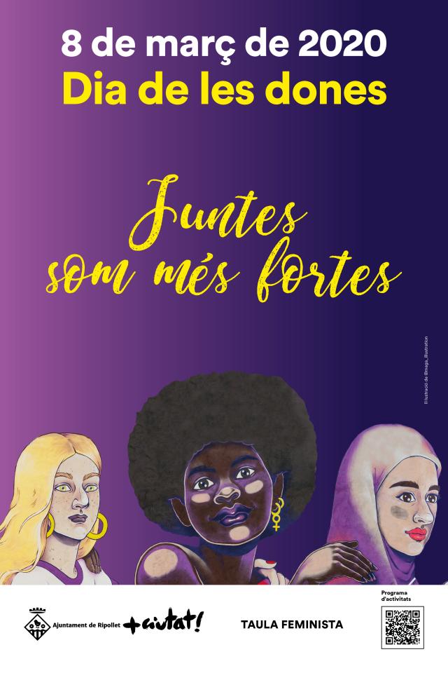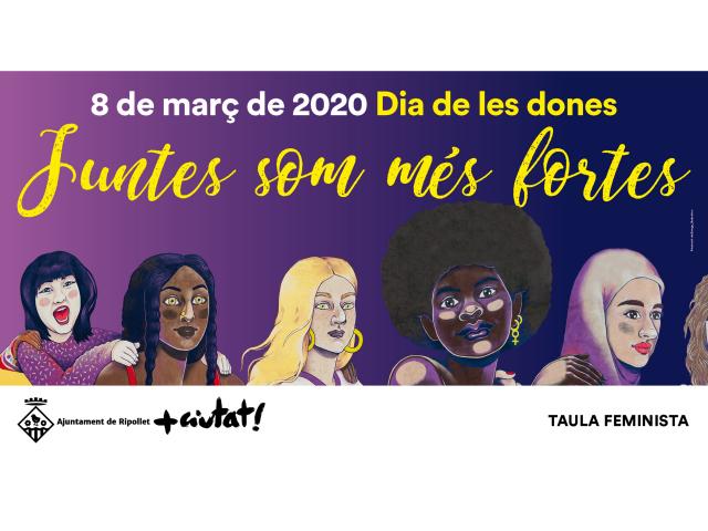 Amb motiu del Dia de les Dones, el 8 de març, l'Ajuntament de Ripollet i les entitats i col·lectius que formen part de la Taula Feminista local han preparat un extens programa d'actes que vol reforçar la idea de sororitat. Aquest terme fa referència al lligam estret que s'estableix entre dones basat en la solidaritat, el compartiment d'experiències, interessos, preocupacions, etc., és a dir, a una fraternitat entre dones. Per això, el programa de 2020 porta per lema 'Juntes som més fortes' i porta la imatge del mural feminista del carrer de Padró, realitzat l'any passat per l'artista Maga amb motiu del Dia de les Dones. L'organització espera una alta participació. Una mostra és la gran acollida que ha tingut una de les novetats d'enguany, la cursa, amb més de 900 dones inscrites.
