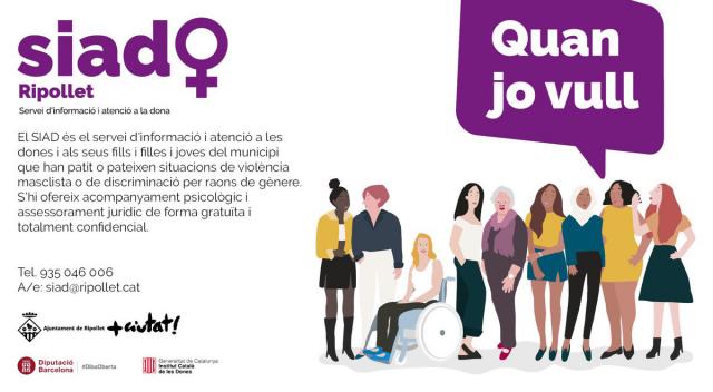 Davant l'actual situació excepcional derivada de l'emergència sanitària pel Covid-19 i a causa de la situació de vulnerabilitat que suposa el confinament a casa per a les dones que pateixen situacions de violència masclista i els seus fills i filles, l'Ajuntament de Ripollet vol recordar que es manté l'atenció telefònica i per correu electrònic del Servei d'Informació i Atenció a les Dones de Ripollet (SIAD).