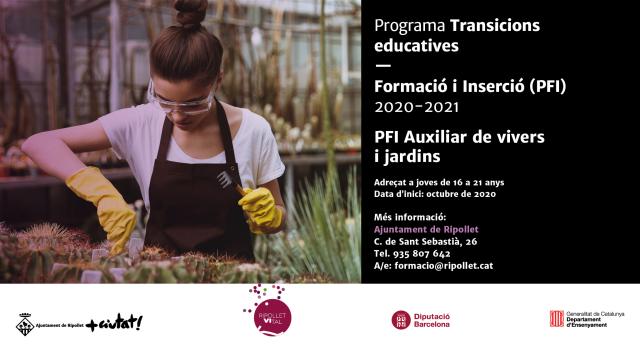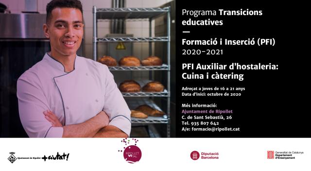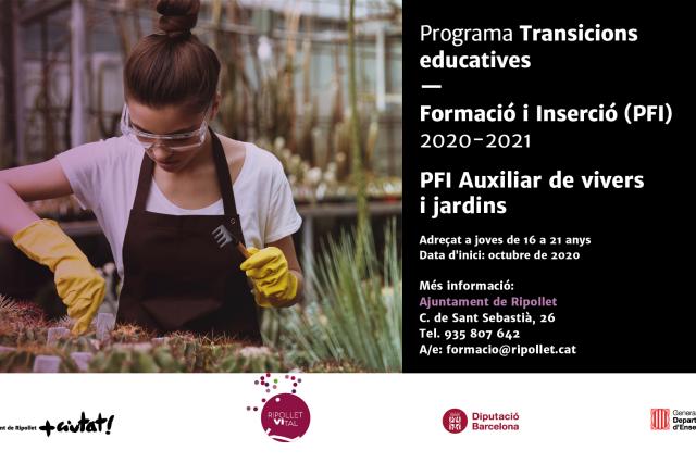 Des del 14 fins el 24 de setembre estaran obertes les preincripcions dels nous Programes de Formació Inicial que s'iniciaran el proper mes d'octubre i finalitzaran el juny de 2021. Enguany, s'ofereixen un total de 30 places pels PFI, distribuïdes en dos especialitats: 15 places d'auxiliar de cuina i càtering i 15 places d'auxiliar de vivers i jardins.