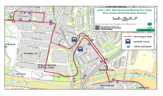 Nova parada de la línea de bus 685 a Montcada i Reixac