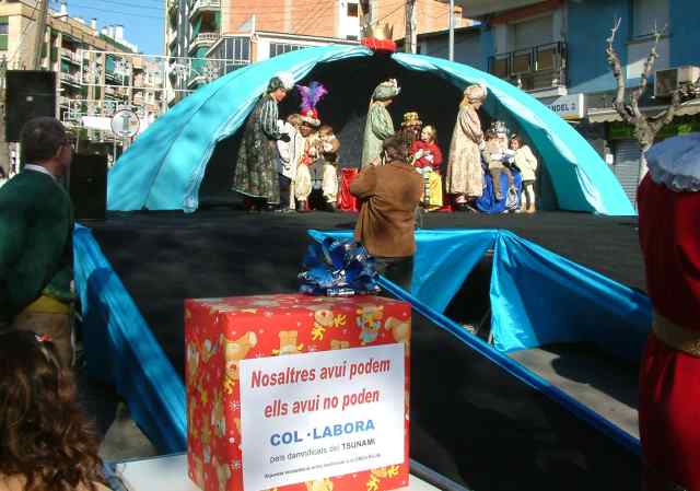 L’entitat organitzadora de la cavalcada de Reis, Ripollet Costums i Tradiciona, lliurarà els 1.653 euros aconseguits durant les festes a Creu Roja, per tal que ajudi els afectats de la catàstrofe del sud-est asiàtic. La major part d’aquests donatius es van aconseguir el passat 2 de gener, durant l’acte de lliurament de les cartes als Reis Mags, sota l’eslògan ‘Nosaltres avui podem, ells avui no poden’ i la resta a través d'una urna, instal·lada al Centre Cultural. Per la seva part, l’Assemblea Local de Creu Roja s'ha fet ressò de l'obertura de comptes solidaris a les entitats bancàries i del telèfon d'informació 902 22 22 92.