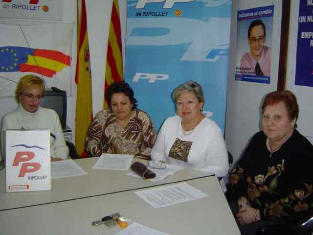 Amb motiu del Dia de les Dones, les dones del Partit Popular a Ripollet van manifestar el dilluns 7 de març en roda de premsa les seves reivindicacions de plena participació i igualtat total i real de la dona. Les militants populars van incidir en la necessitat d’emprendre mesures que permetin la comptibilitat entre la vida laboral i familiar. Així, des de l’agrupació local del PP, es va demanar l’equiparació de sou entre dones i homes, flexibilitat d’horaris, tolerància zero amb la violència domèstica, habitatges més assequibles per als fills i una millor educació i formació per arribar a la igualtat d’home-dona. Des de l’òptica local van tornar a recordar la necessitat d’una segona escola bressol i una residència per a la gent gran, a més d’una rebaixa en el tiquet de menjador escolar.