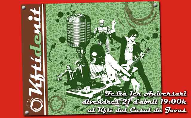 El Kftí del Casal de Joves de Ripollet celebrarà aquest divendres el seu aniversari, amb diverses activitats a partir de les 19 hores, com ara jocs de rol, música, video i focs, amb la col·laboració de les entitats juvenils locals. Amb aquest acte s’enceta la programació estable, anomenada ‘Kftí de nit’, que tindrà lloc cada divendres. Coincidint amb la celebració del primer aniversari, s’estrenarà la nova entitat de discjòqueis Projec-T Deejays Ripollet, acabada de constituir.
