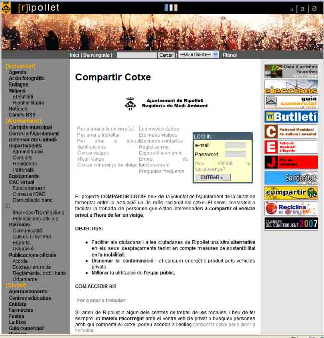 La secció de ripollet.cat per compartir cotxe ha registrat al llarg del seu primer any de vida un total de 500 itineraris i la visita de 1.845 internautes. El passat setembre van visitar la web 259 persones, el doble que fa mig any. Dels 144 usuaris que s'han donat d'alta, la majoria són dones, en un 75%. El perfil d'edat està situat en la trentena, amb una mitjana de 35 anys els homes i 33 les dones.