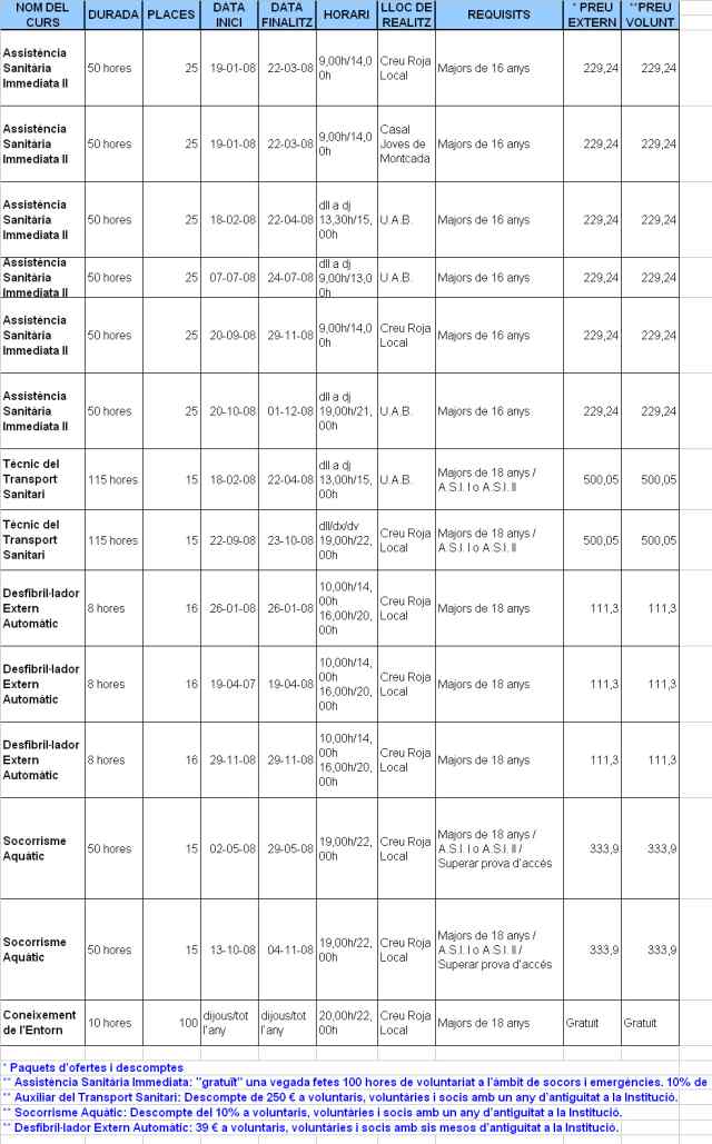 Els cursos estan reconeguts per l'Institut d'Estudis de la Salut i seguir-los comporta accedir a crèdits de lliure elecció. Totes les persones que pertanyin Creu Roja o alguna entitat solidària de Ripollet, Cerdanyola i Montcada tindran un descompte. Els cursos es realitzaran a la seu de l'Assemblea Comarcal, a l'avinguda de la Creu Roja 25-29 de Cerdanyola, a la UAB i a l'Espai Jove de Can Taulé de Montcada. Les inscripcions es poden realitzar a la seu de l'Assemblea, de 9 a 13 hores i de 16 a 19 hores, de dilluns a divendres. Per demanar més informació podeu trucar al 936 916 161.
