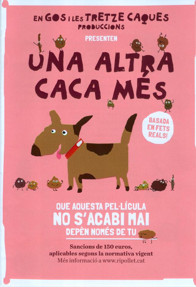 L'Ajuntament de Ripollet ha iniciat una campanya de sensibilització sobre els excrements de gos a la via pública. A banda de penjar cartells i repartir díptics informatius, el 30 d'abril s'organitzarà una festa al parc de Rizal on hi haurà música, tallers i activitats diverses de conscienciació.