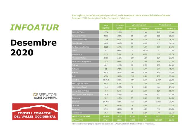 Aquest increment preocupa al Consell Comarcal, ja que desembre és un mes en què habitualment aquesta xifra es redueix. Enguany, ha augmentat després de deu anys consecutius de disminucions. A més, l'increment del desembre de 2020 és el segon més pronunciat de la sèrie disponible per a la comarca, només superat pel desembre de 2008, coincidint amb la gran crisi econòmica, quan l'atur va créixer un 5%.
