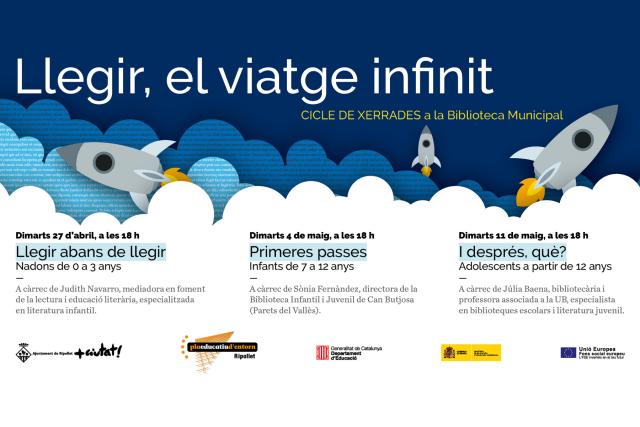 El Pla Educatiu d'Entorn de Ripollet 2020-2023 ha començat a donar els seus primers fruits, amb la programació d'un cicle de xerrades a la Biblioteca Municipal, sota el títol 'Llegir, el viatge infinit'. Amb l'objectiu de fomentar la lectura entre els infants i joves, entre els mesos d'abril i maig, s'oferiran tres xerrades dirigides, principalment, a famílies, però també a la resta de la comunitat educativa, entorn el foment lector.