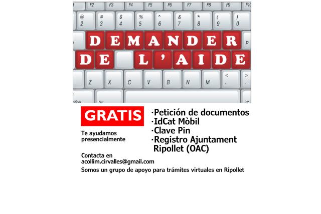 És per això que, Acollim Cerdanyola Ripollet s'ofereix a acompanyar a les persones que ho necessitin en la realització de tràmits presencials, com ara donar-se d'alta a l'IDCAT mòbil, Clave PIN i per registrar documents en línia a l'Ajuntament de Ripollet (OAC). El col·lectiu també ha anunciat que està en converses amb l'Ajuntament de Ripollet perquè li cedeixi un espai on pugui ajudar en la realitació de tràmits via ordinador. Per sol·licitar el servei, que és totalment gratuït i realitzat amb el suport de voluntàries amb coneixements dels procediments i d'idiomes, cal enviar un email a acollim.cirvalles@gmail.com