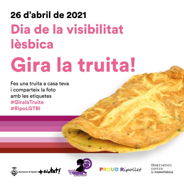 A més d'onejar la bandera lèsbica al balcó de Ripollet Ràdio, per segon any consecutiu, l'Ajuntament ha organitzat l'acte de visibilització 'Gira la truita!' una activitat carregada de simbolisme, que ja se celebra a altres municipis d'arreu de l'Estat, i que a Ripollet es va impulsar l'any passat, durant el confinament. Així, es convida a la ciutadania a fer una truita, amb els ingredients i la forma que vulgui, i compartir la foto a les xarxes socials amb els hashtags #GiralaTruita i #RipoLGTBI. Aquesta activitat compta amb el suport de l'Observatori Contra l'Homofòbia, Proud Ripollet i el Comitè de Dones de Ripollet.